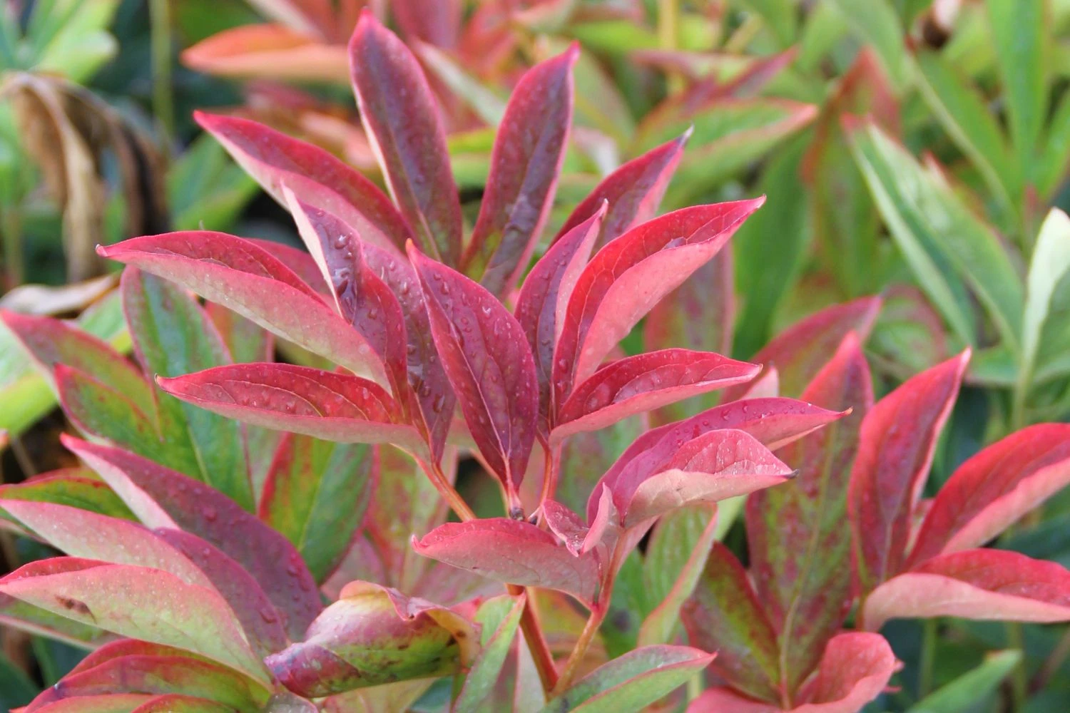 Die vollendet geformten, magentafarbenen, gefüllten Blüten der Paeonia lactiflora ‚Kansas‘ sind bezaubernd. Vom Austrieb bis zur Blüte fällt diese Staudenpfingstrose durch ihr ungewöhnlich dunkles Laub, ihre rötlichen Stiele und fast schwarzen Knospen auf. Im Herbst besticht sie oft durch weinrote Herbstfärbung. Die Blütezeit ist Mitte Mai.